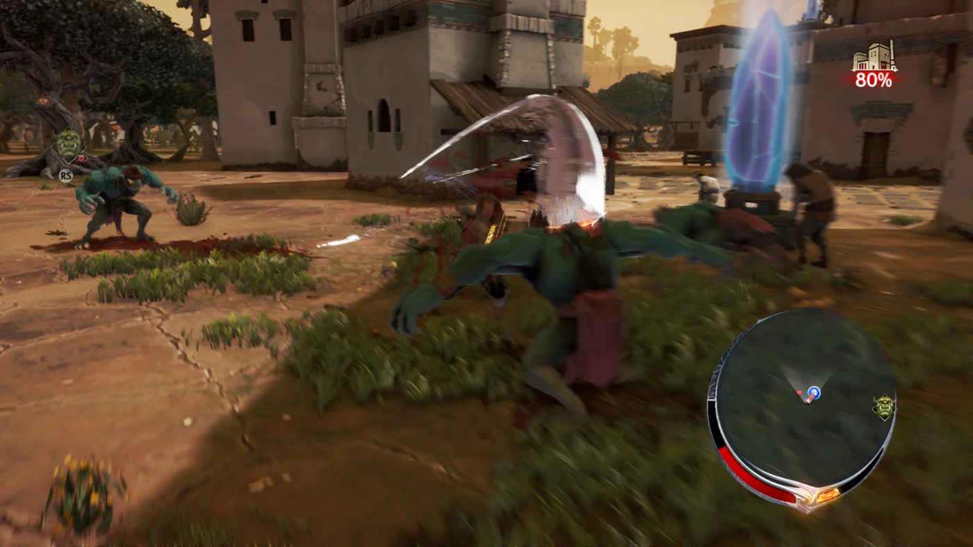 Due to how random your objectives are and how you end up recycling several aspects of the game over and over, you never feel like you are working towards anything. Whether it's mission two, sixteen, or twenty, the world never feels different or change to adhere to the current narrative. While there is a plot designed around the efforts to save what is left of the population, you never actually see any of it until the final cutscene. Each Town, Village or Kingdom feels lifeless and hollow. You'll have small croppings of people surrounding teleportation crystals that you'll use to transport them to safety, but eventually, you'll just bypass them on the way to the Ravenii as you'll often not have the time to save them. Eventually, you'll have to start saving civilians that are trapped on top of cliffs and areas surrounded by 'instant death' thorns, to which I would often say "sucks to be you." and then I would turn right around and abandon them to go save those on the ground or a nearby rooftop.