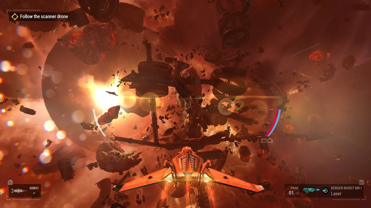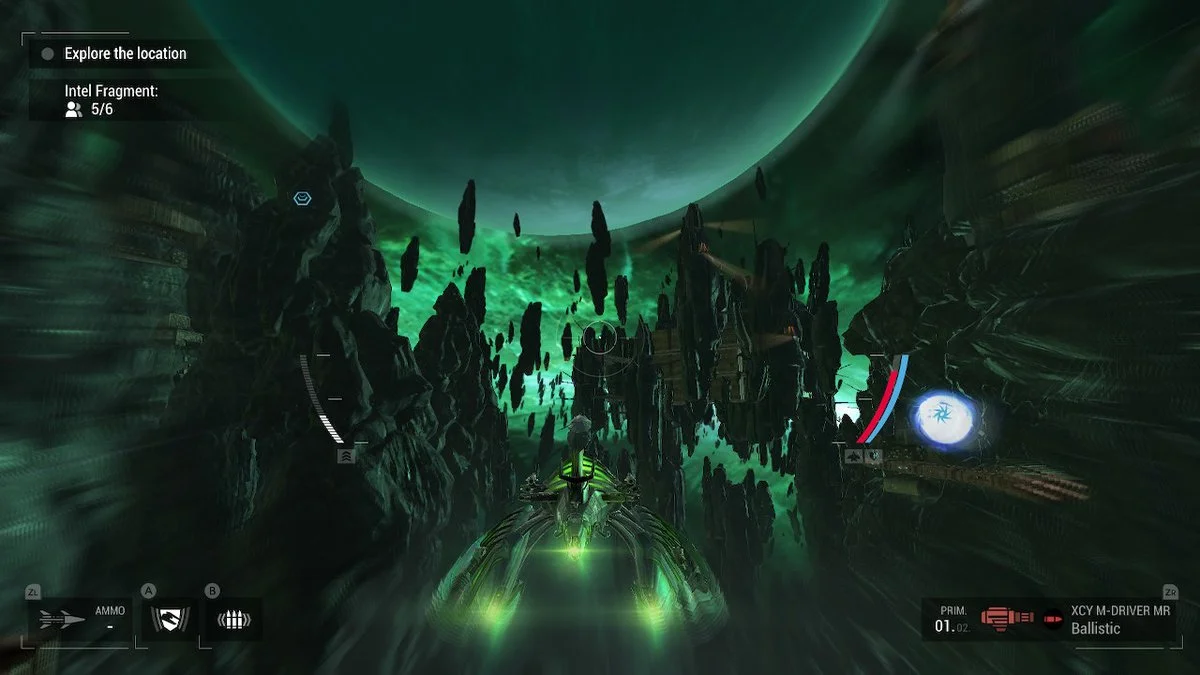 As you hunt down those responsible for the Shattering, you'll encounter those from Bryce's past, uncover long-kept secrets, and experience acts of revenge and betrayal. The story can be interesting at times but can feel lessened due to how it breaks up the action by having your pilot explore recently completed zones for ship upgrades and collectibles. You'll tour these locations with a drone, having its color change depending on your distance from each collectible.