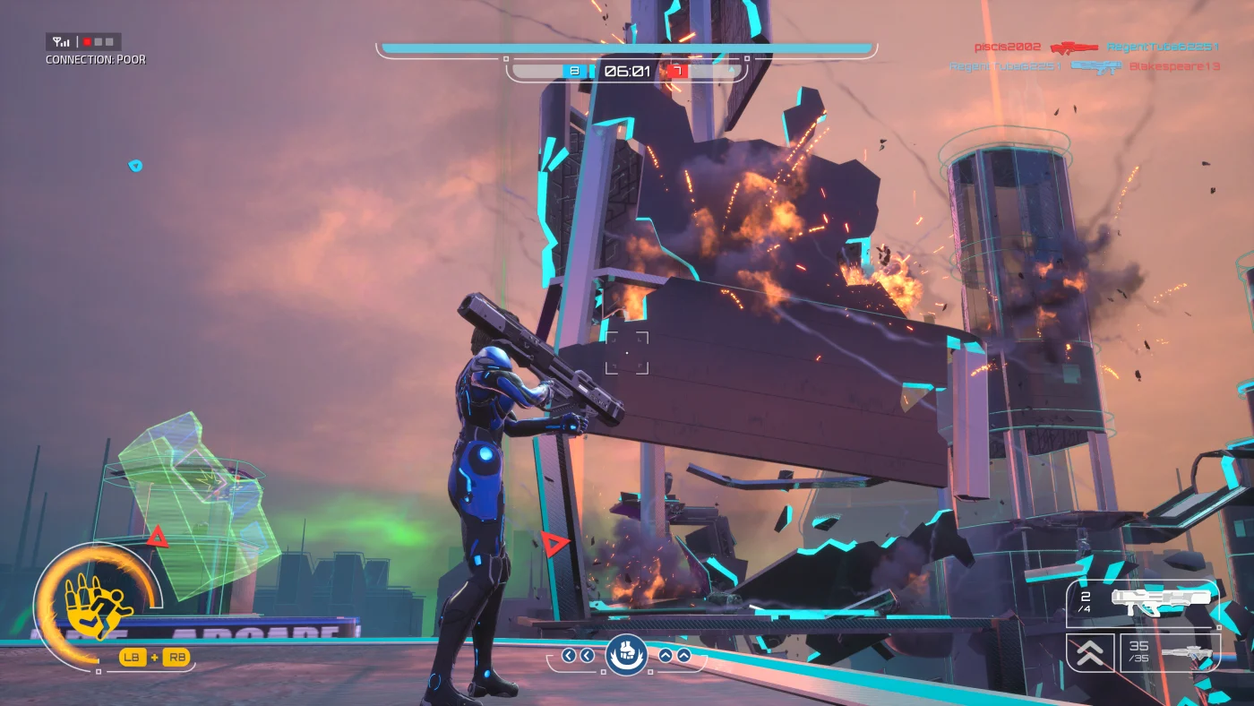Crackdown 3 is split into 2 separate experiences each with its own launcher; a single player campaign and its multiplayer mode called Wrecking Zone. At launch, online multiplayer is split into Agent Hunt and Territories. Agent Hunt is similar to that of kill-confirmed where you’ll dispose of the enemy agent and collect their emblems. Territories are your typical bout of controlling zones on the map and earning points in the process. While it is here across its three maps where the cloud-based destruction does its thing, the buildings themselves are empty of any contents and you really only see flat ground and wall pieces break off; even among its destruction, it’s really disappointing. As I’ve mentioned before, the quick auto-targeting you can use makes most confrontations on who saw who first and what weapon they have, making it not so much a test of skill but more that of opportunity. While I can see dedicated fans of the game spending a lot of time here, the offerings here are incredibly basic and makes the experience feel like a bare minimum effort.