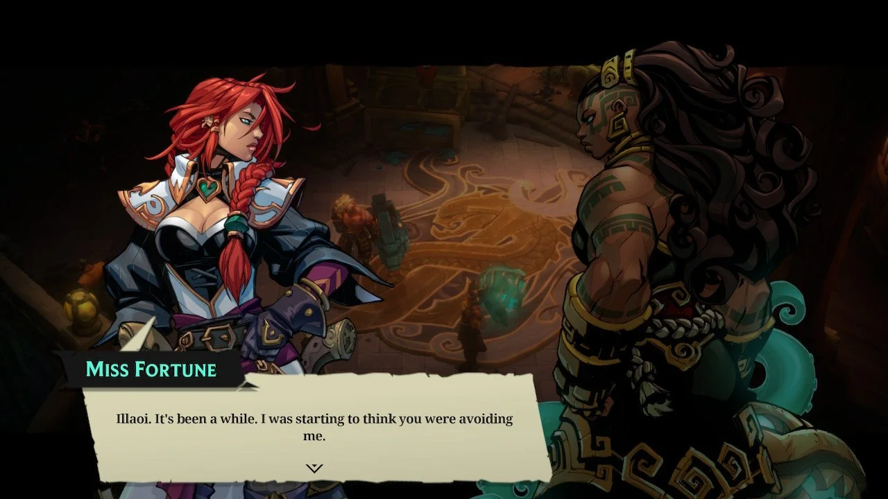 While you’ll have a cast of six characters to tinker around with, min-maxing their builds, equipping them with items and weapons, the narrative is largely focused on Miss Fortune and Illaoi, with the remaining four characters largely along for the ride. There are certainly other League mainstays that you’ll interact with, or fight at key moments in the game, but more or less, Fortune and Illaoi are who the plot is mostly centered around. Now having said that, characters like Yasuo and Ahri certainly have their moments, each getting decently sized narrative threads woven into the fabric of this adventure. You’ll also be joined by Braum and Pyke, but they are largely there to serve a smaller purpose, as Braum, for example, provides a lighter tone around this dark and moody journey due to his charming and extremely positive personality. Pyke, on the other hand, simply wants to kill things, and can also swim around to unlock new locations, making him a vital member of the team for unlocking a vast array of secrets.