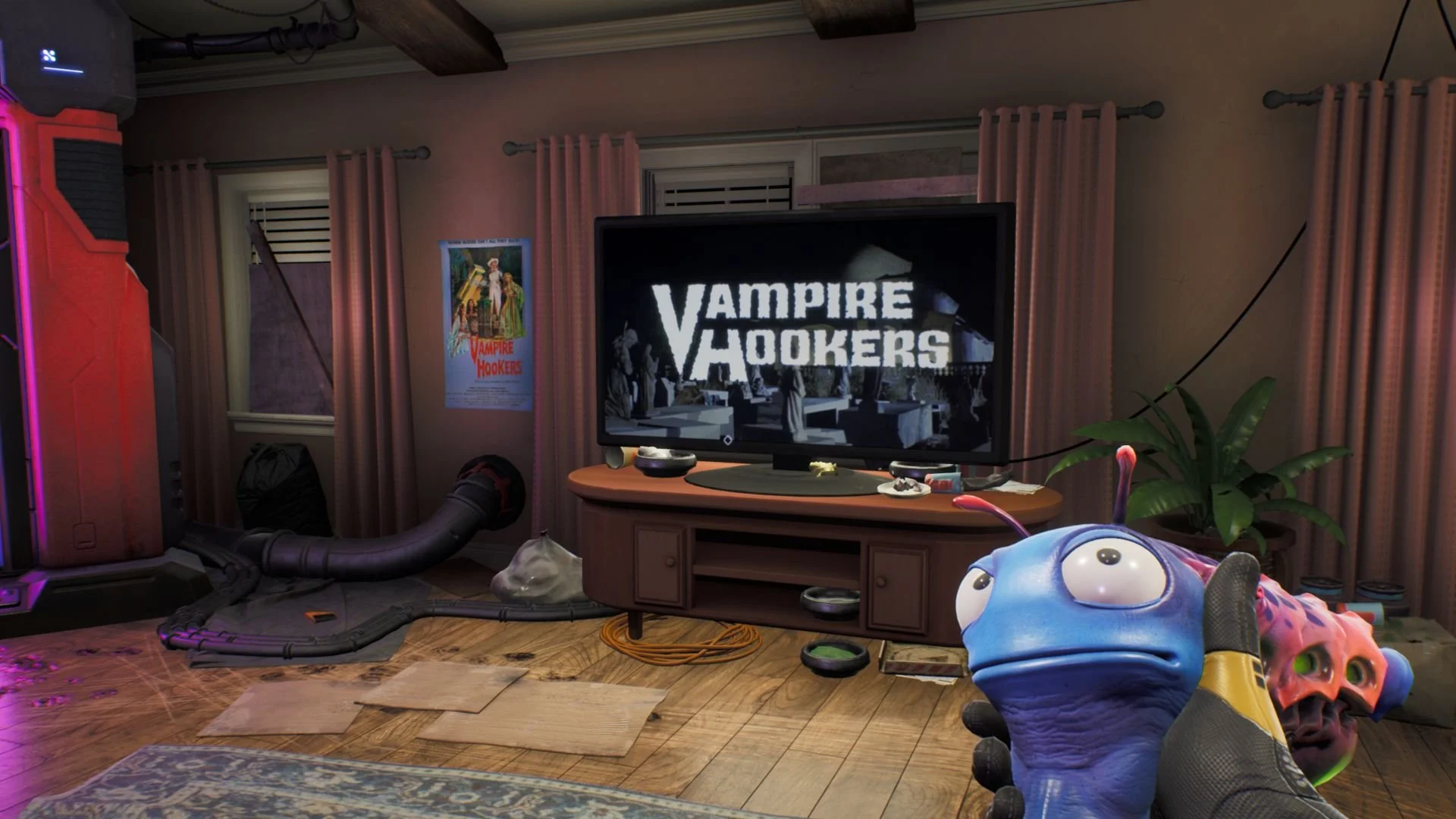 Also, as something of a progression reward, Gene will often be watching a full-length movie that you can just sit and watch, including the notoriously bad, Tammy and the T-Rex, Vampire Hookers, and Blood Harvest. You can also visit Blim City and take in the few TV screens there, watching a host of animated shorts, puppet shows, and more. For as throwaway as some of these skits are, especially the one where a sock puppet finds his wife’s adultery to be hysterical, there is a lot here and after a while, it comes across as impressive with how much content there is that most people will likely just skip over.