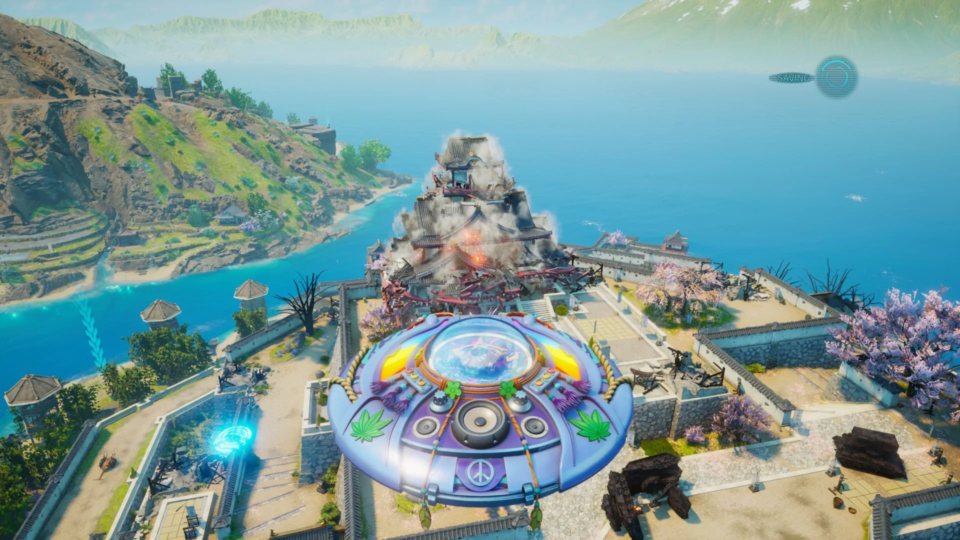 The biggest change here to how Destroy All Humans! 2 operates is that you take on missions that are stationed around each of the five open environments in ways typical of open-world games and not just exclusively through missions. This allows you to freely explore the map as you see fit, harvesting various types of humans via the Gene Blender, which allows you to upgrade various mechanics like how fast your Mind-Flash recovers or slowing the decay of the body you’ve recently snatched. Each upgrade will require a set of three different human types, from Soldiers, Cops, and Hippies, to Cosmonauts, Ninjas, and Yakuza. The freedom of having your ship outside of missions allows for a lot of destruction as you can sort of just do your own thing. You can also traverse the map looking for additional landing zones, which have you solving a series of tasks in order to unlock them.