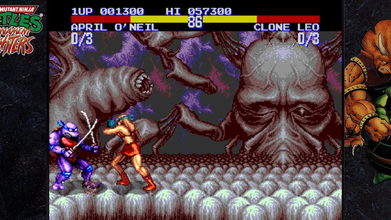 Draped in a comic book-style menu, where the game’s cover and gameplay are front and center in full color, the presentation here pops. The comic panels are oddly pulled from the original graphic novels, where the turtles all featured red bandanas and were far more graphic than anything we really have seen from the franchise since. Each game also allows you to opt into either the standard US release or the Japanese one, with some games having slight differences in how a character’s move will act, text and sound effect differences, or, in the example of Tournament Fighters, Aska’s Japanese version wears slightly less of an outfit and has a particular “bounce” to her victory pose that we never had in the US release.