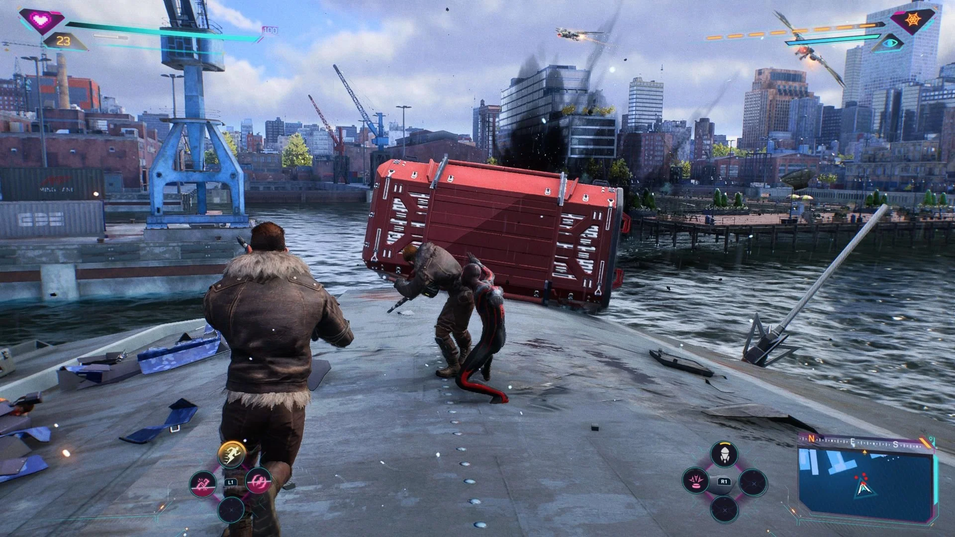 New to Spider-Man 2 is the parry system. This allows Spider-Man to pull off a counterattack should you time it correctly. This is useful against the heavier brutes that can really deal out significant damage. Holding L1 brings up your combat options whereas tapping it at the right time will cause Peter’s spider arms to lash out whereas Miles will use his Venom Stun to gain the advantage in the skirmish with a follow-up attack also an option. It’s a system that helps combat without being too involved or too complicated.