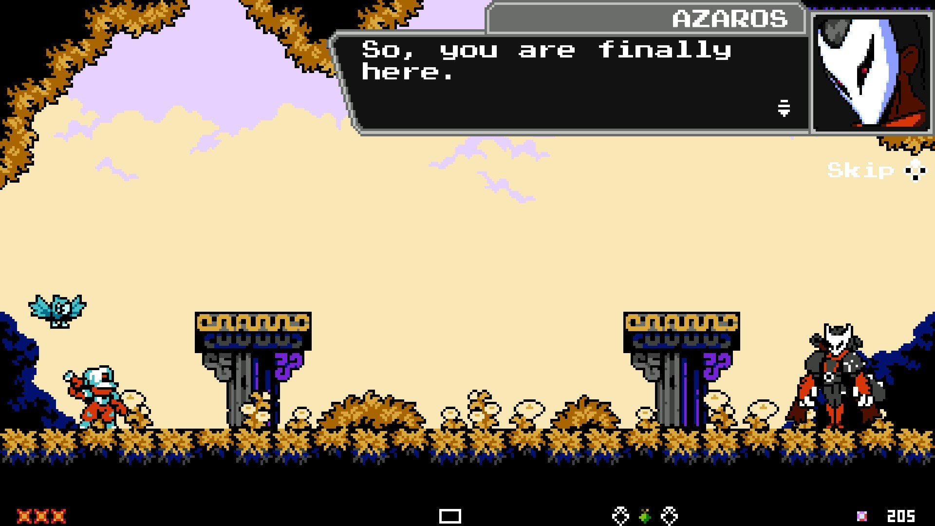 While a lesser nitpick, I certainly took issue with your bird companion, Garou. He is sort of your guide in some ways, assisting with tutorials and lore. While a few chat boxes covered Bat Boy entirely for some reason, his nature to cling to you often resulted in me getting lost in the action and assuming he was something to dodge. Given you need to time dashes and jumps and attacks to swat or avoid various projectiles, his inclusion here often made me think something was about to strike me at all times.