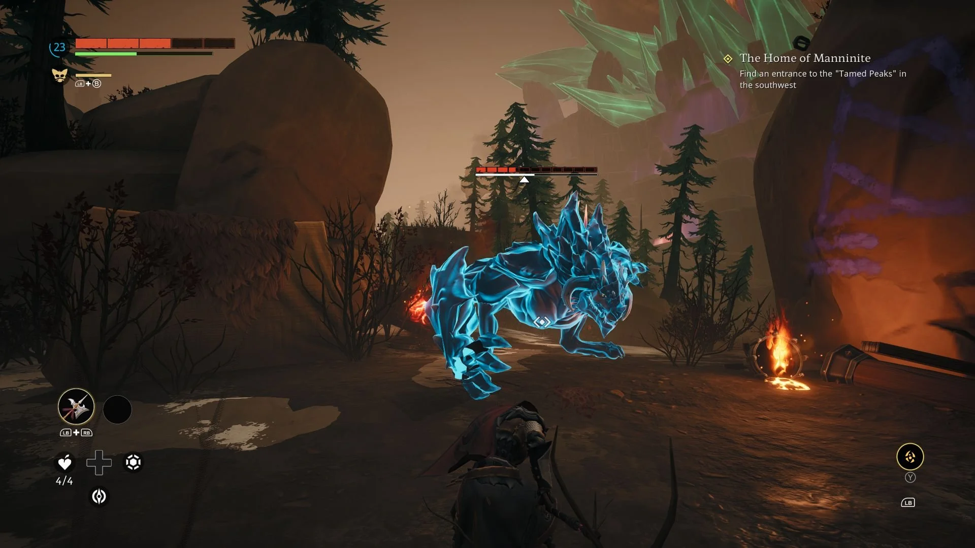 Upon your resurrection, you’ll eventually encounter Boji, a half-wolf half-Xhinnon being who knows the ins and outs of this land. He tells Farren that the only way they can leave this valley is by talking to his master, a man whom Boji himself is coincidentally on his own way to find. However, videogames being videogames, Boji tells Farren that the only way they can travel to him is to defeat three particular threats across this land first, each with their own general to take care of first.