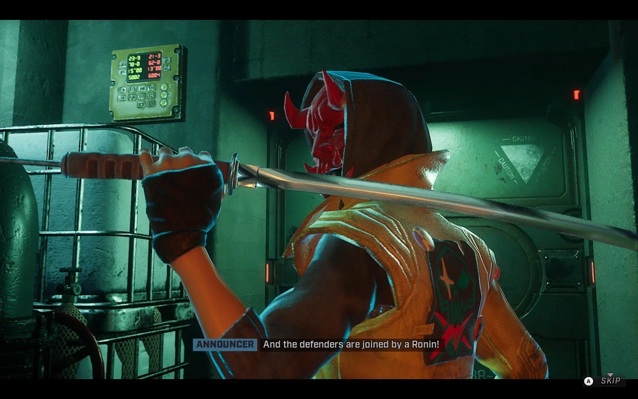 Players take on the role of Scarlet, an ex-bounty hunter who joins this televised bloodsport to take revenge against the show’s current champ. You’ll come to understand more of her story through a few of the game’s cutscenes, showing us the road to her involvement in this sadistic game show. The show itself is called Homicidal All-Stars, and a short while before release, this was also the title of the game before it was changed. Apart from the game's menu, the Homicidal All-Stars logo is everywhere.