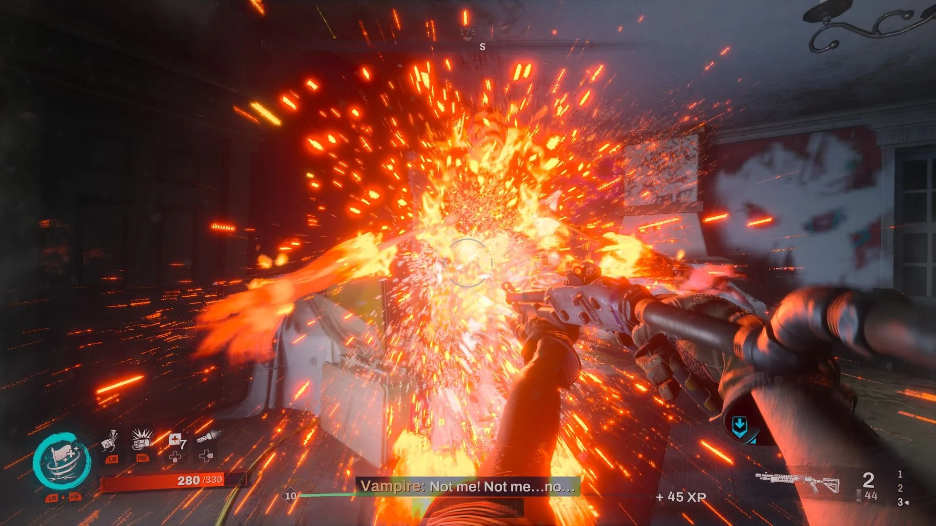 Exploring Redfall and picking a character to hunt down vampires results in some pretty typical combat with AI that is some of the worst I've seen in a long time. I've had entire battles next to a group of vampires that couldn't care less I was there. During the game, you'll be often hunted by a challenging foe called the Rook, a vampire that shows up once you've filled a certain meter. While this battle can often be tough, I've had numerous times where he just stood there and took everything I threw at him until he became a pile of ashes on the ground. It’s a shame this foe is the same each time and not something else to add some variety.