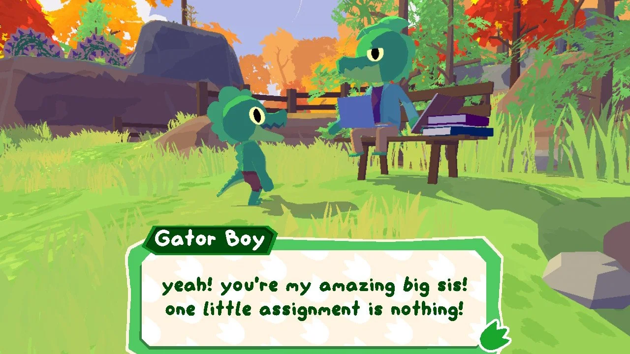 Energized with a plan that will make his older sister stop with her studies and join them in the game, Lil Gator will be tasked with tracking down his friends and their respective friend groups, all busy with various things like their own personal studies or wanting to look cool by simply standing around doing nothing. Each of these friend groups will have to be individually convinced to join in on this pretend adventure, to take part in this fantasy game in order for Lil Gator to woo his sister away from her project.