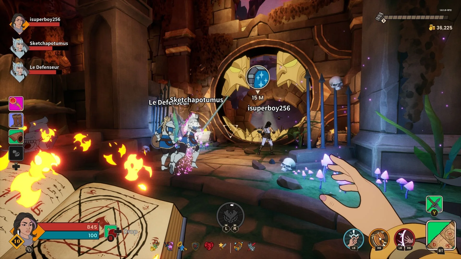 Your main attack is RT, with a block with a melee weapon or shield with LT. Y will swap your weapons, even if it doesn’t feel too responsive to do so, often wanting you to wait a full second after attacking with your main weapon. You can also sprint attack as well, but this is only available for melee options and not for Maggie’s spellbook. Characters also have a mobility move as well, which represents the LB portion of your available skills. Maggie can teleport a few feet ahead of her whereas Rico can throw a pocketful of sand at enemies, blinding them so he can get away.