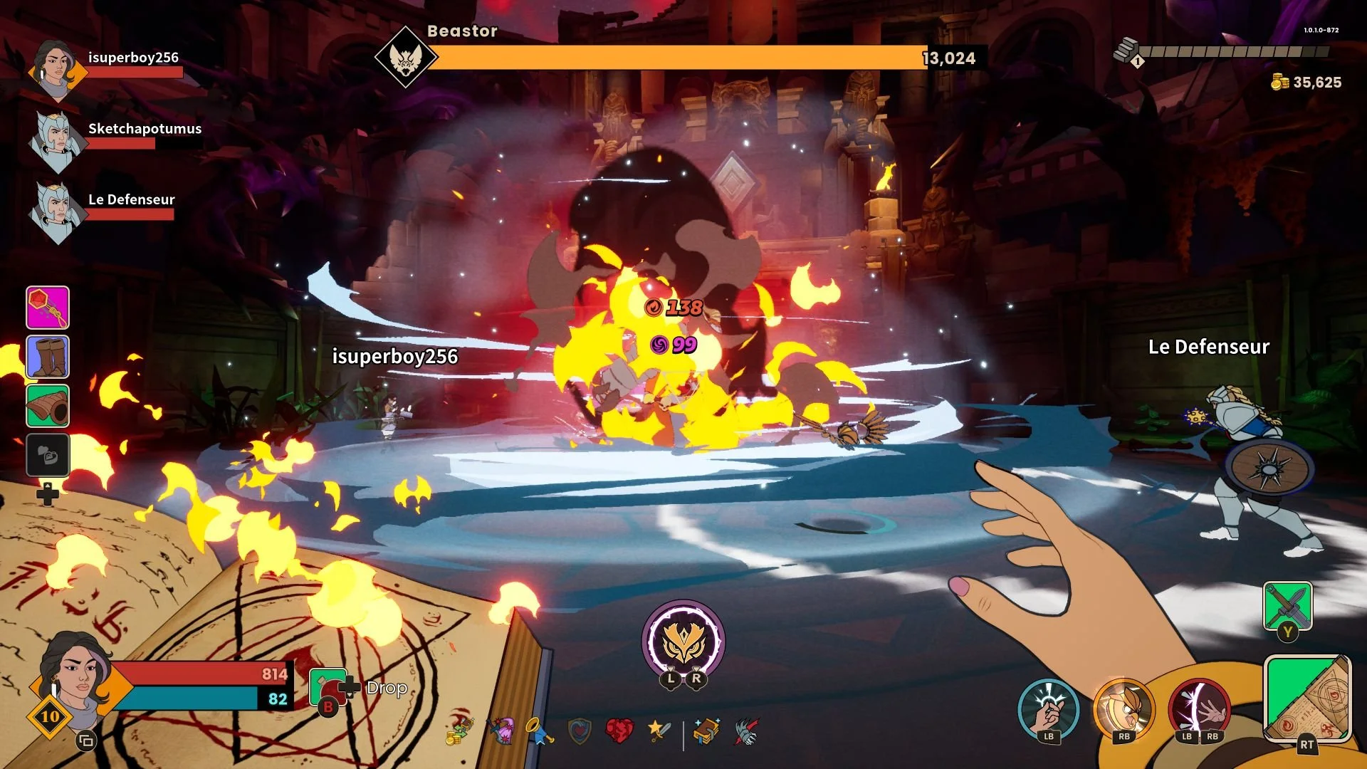 Each hero has three basic skills and two forms of attack. You can charge up your weapons which for Maggie has her able to cast both a close-range fire spell or charging it up to launch it across the map with a pretty sizable AOE area. Now, while I say fire spell, you can earn other elemental types such as frozen and electrical options. Abilities are mapped to the LB and RB buttons, with your ultimate attack being LB+RB. You also build up a Mythforce meter which kicks in a few bars of the Mythforce theme as it boosts your attack, replenishes health, and resets all your cooldowns.