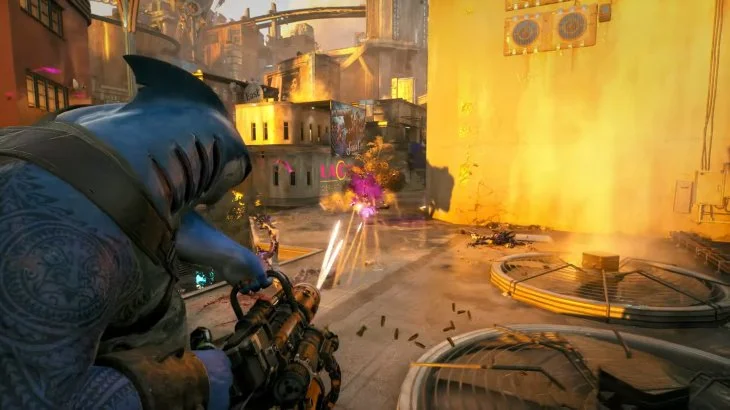 Combat generally works by gunning down everything you see or using your melee attacks to bludgeon, slice, or stab your foe into the pavement. The gunplay does feel fine but never more than that. It feels satisfactory at best. Considering Rocksteady changed the gaming landscape with the Arkham combat system, this doesn’t feel even remotely creative. To shake up combat and make it appear to be more than shooting, some enemies will trigger a counter state indicated by an effect around their hand, which pressing a different button to shoot will affect that counter and damage them. Honestly, while I get what they were trying to do, it basically just makes it another way to just shoot them. Some enemies will have certain affliction weaknesses, which are the game’s status effects. You’ll eventually be able to outfit your melee weapon with fire, poison, electricity, and more, letting you set them on fire or freeze them, which I found to be the better option all around. While the game offers you various ways to maim your foes, everything is things we have seen across every live-service game already; there is nothing new here.