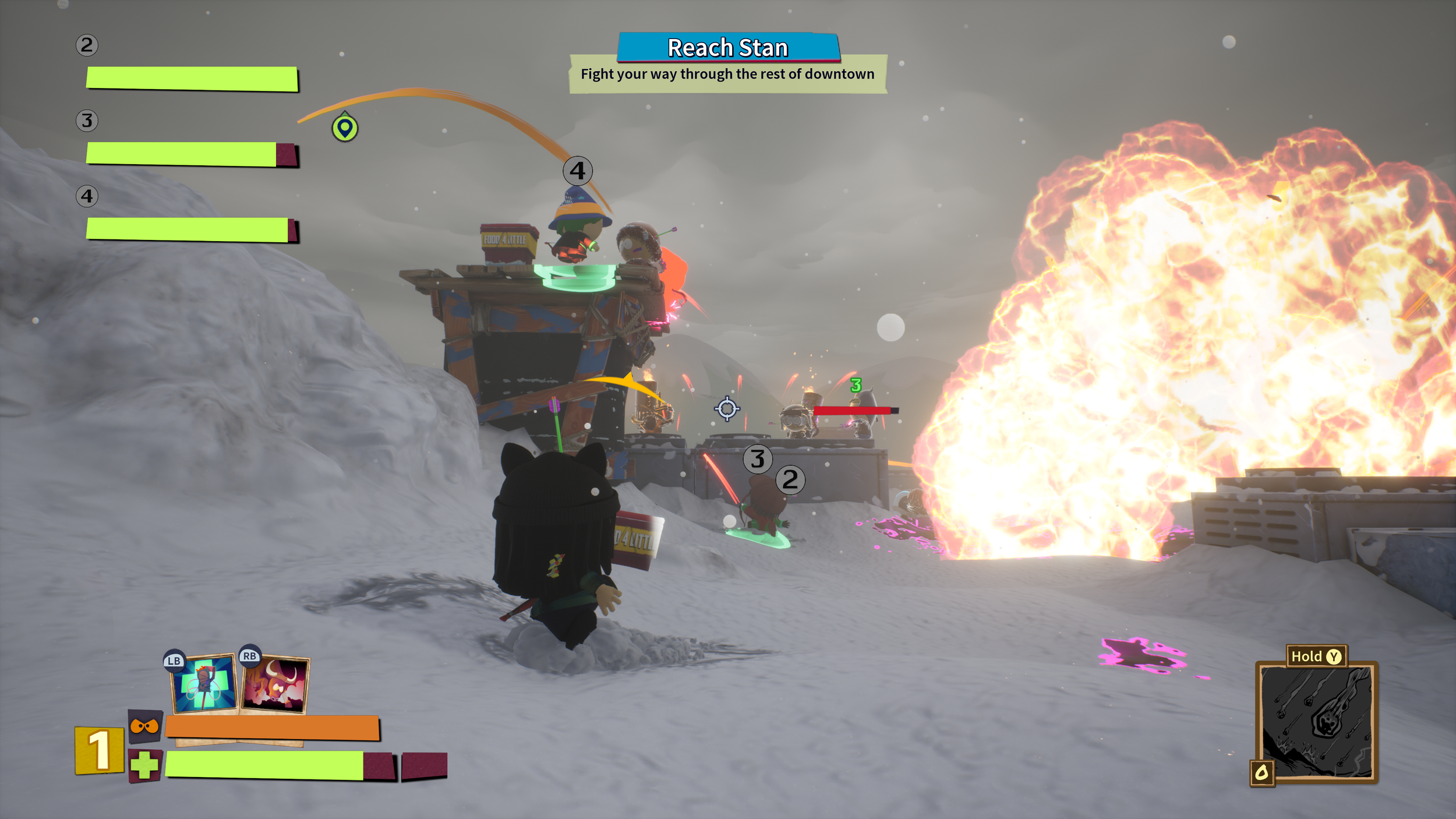 Part of the recent South Park game’s charm has been customizing your new kid. Snow Day does feature the ability to do so, but much of it is tied to a series of challenges that you’ll take on to earn PP. This is the currency used to buy additional outfits. Honestly, I found the outfit I liked and used it during the whole campaign, never changing it once or feeling the need to grind away these unlocks to earn said currency.