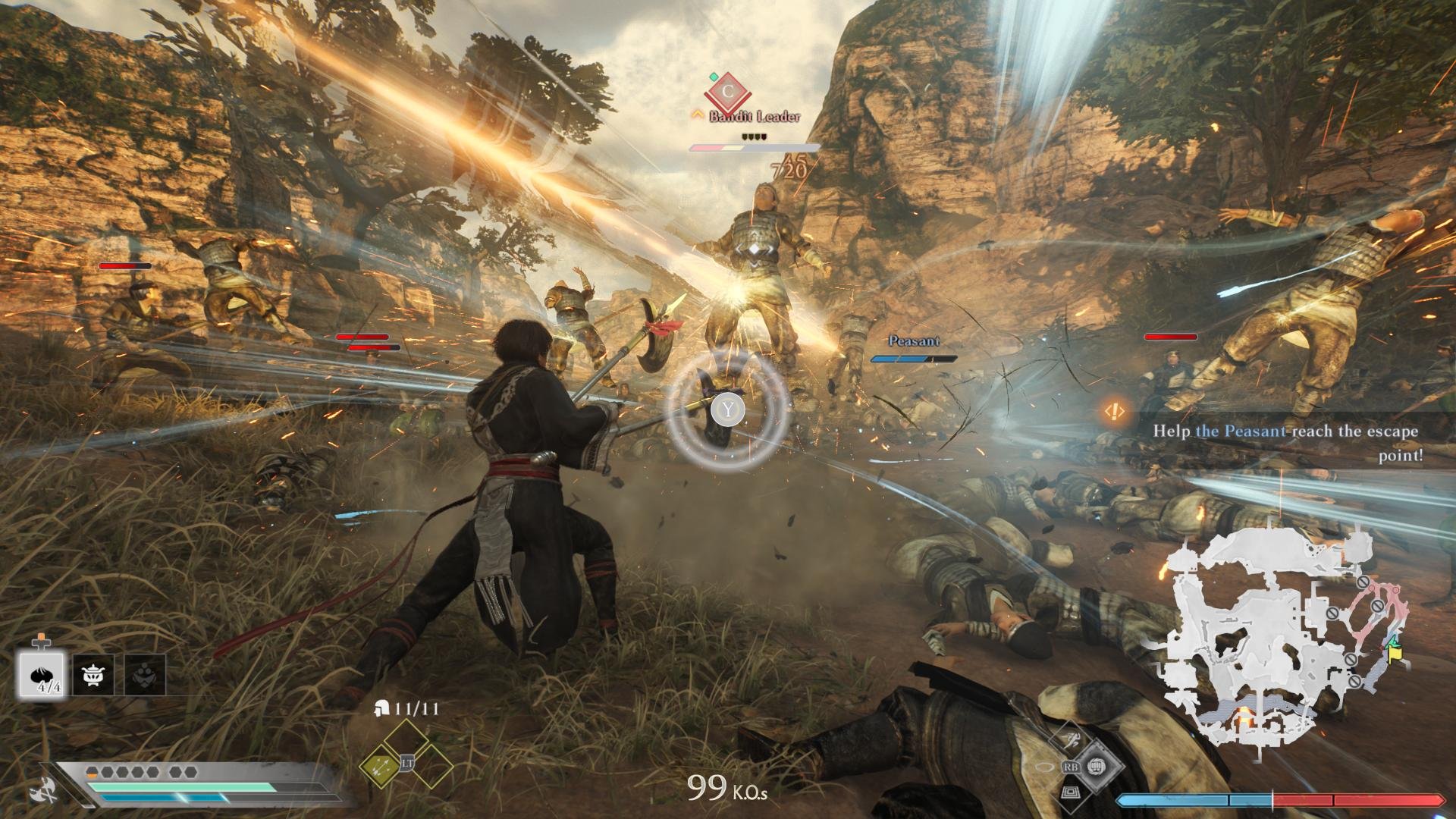 While the series is known for having a lot of enemies on screen, it is staggering how many enemies can be on screen and still maintain a solid framerate. While it's not the extent of something like Warhammer 40K: Space Marine II or World War Z, it's still an impressive amount given the size of the environments. Taking in the big battles at the end of some missions as you tackle the base leader or the bosses that make up that scenario's story were always a treat, especially when you find a weapon that seriously just wrecks shop, which was the case with the crescent blade, a personal favorite of mine.