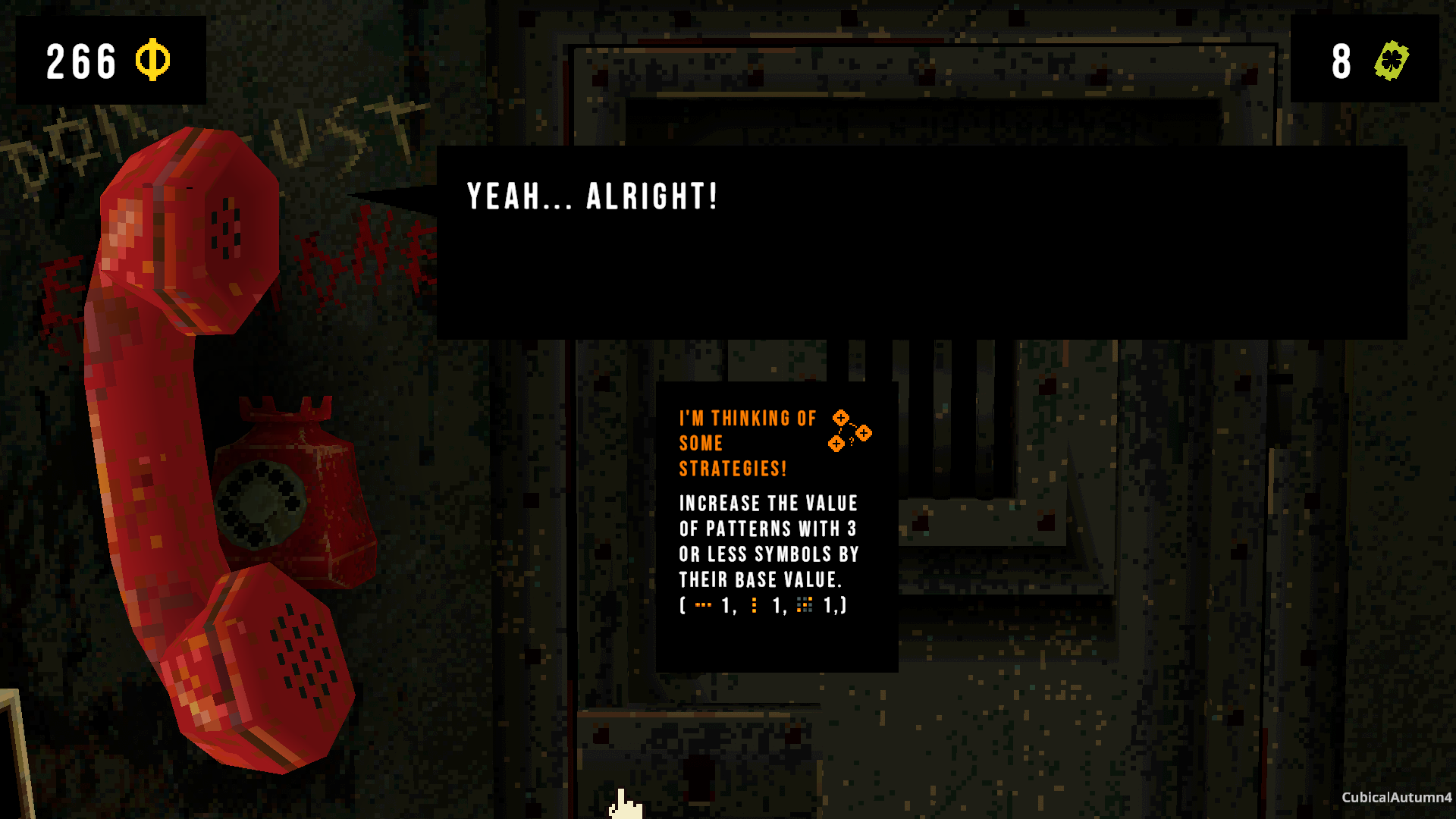 The goal of CloverPit is simple: get the money to pay your debt, or pay the ultimate price for failing to meet the deadline. The only way to get the money to pay it off is gambling, more specifically, the slot machine. So your best bet is to spin the slots and hope for the best as you try and make your deadline.