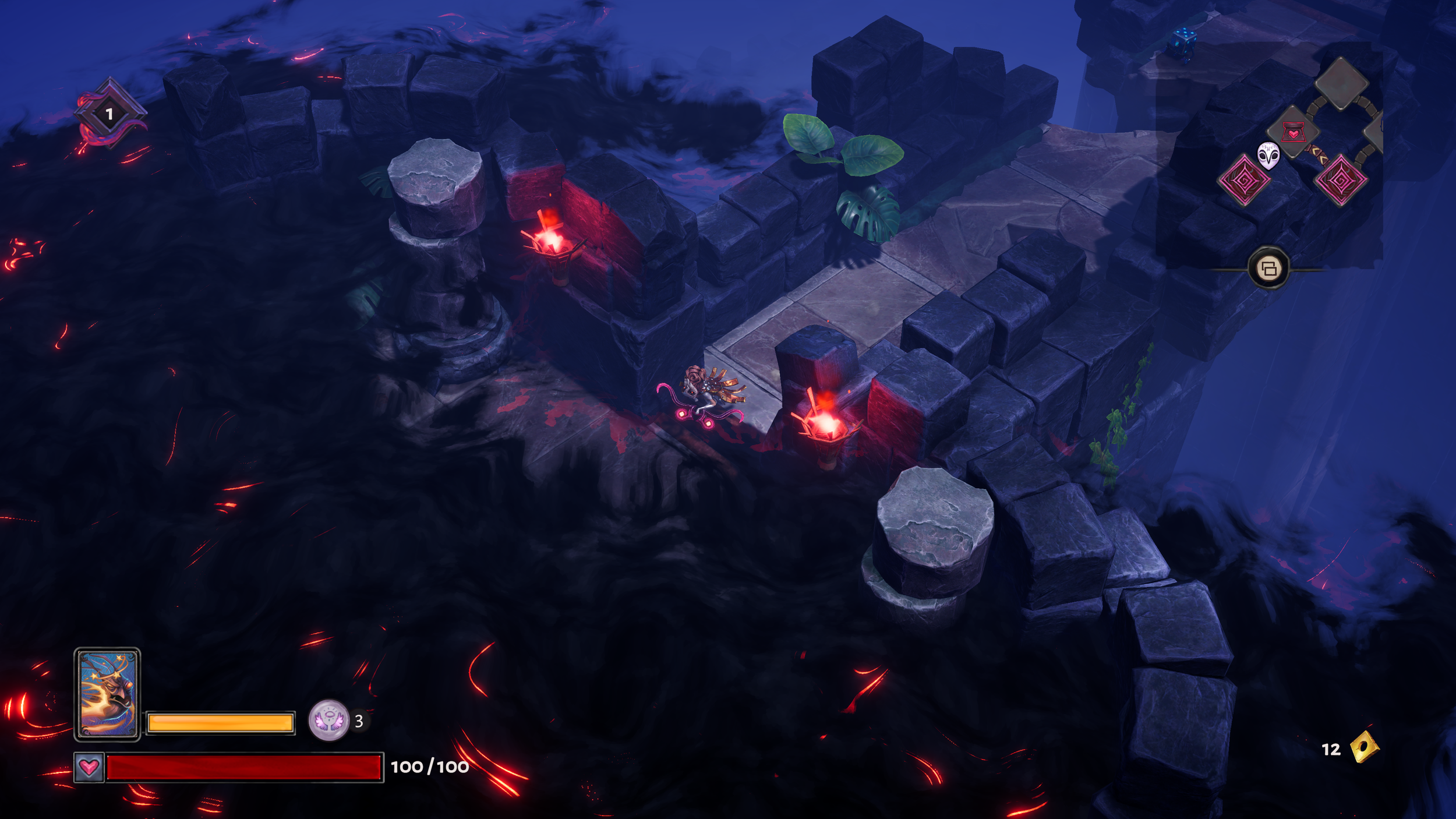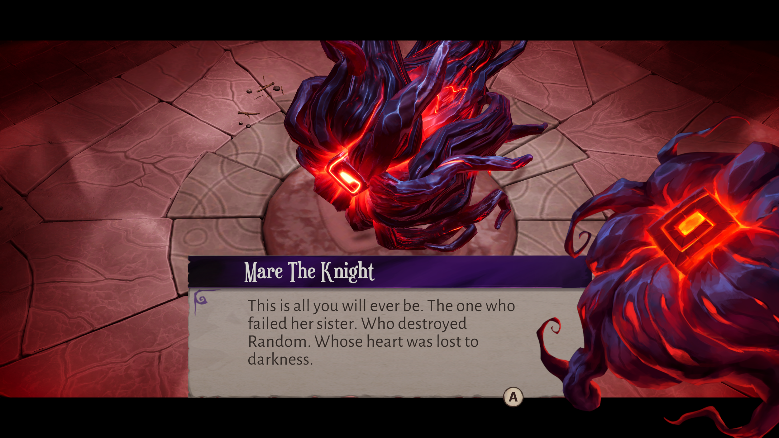 The story presented here sees the previous Queen, Aleksandra, and her Die, Fortune, cast into the Black Die, a die she harnessed in the previous game. Mare, a devious foe and your central antagonist, was responsible for killing her sister and is in control of the Black Die and sends his High Servants after you, each of which are bosses in the three biomes you'll venture through. While Mare occupies the fourth and final biome, a single run of this game only presents a small portion of the story, and the narrative twists in a way where repeated runs will see the best ending and save those who Aleksandra encounters and rescues throughout the journey.