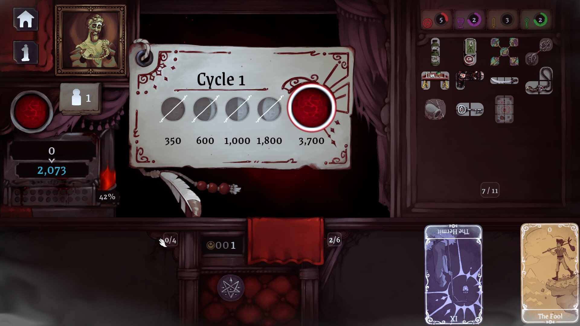 Since the more you can fit in their bag, the more the sale will be worth. So, making sure there is no additional space left in their bag is critical. The trait of the item also matters, as not only do they get more expensive as you sell more from the same minor arcana, but there is space that matches those minor arcana in your customer’s bag. This can either increase the profit from that item or get rid of it altogether.
