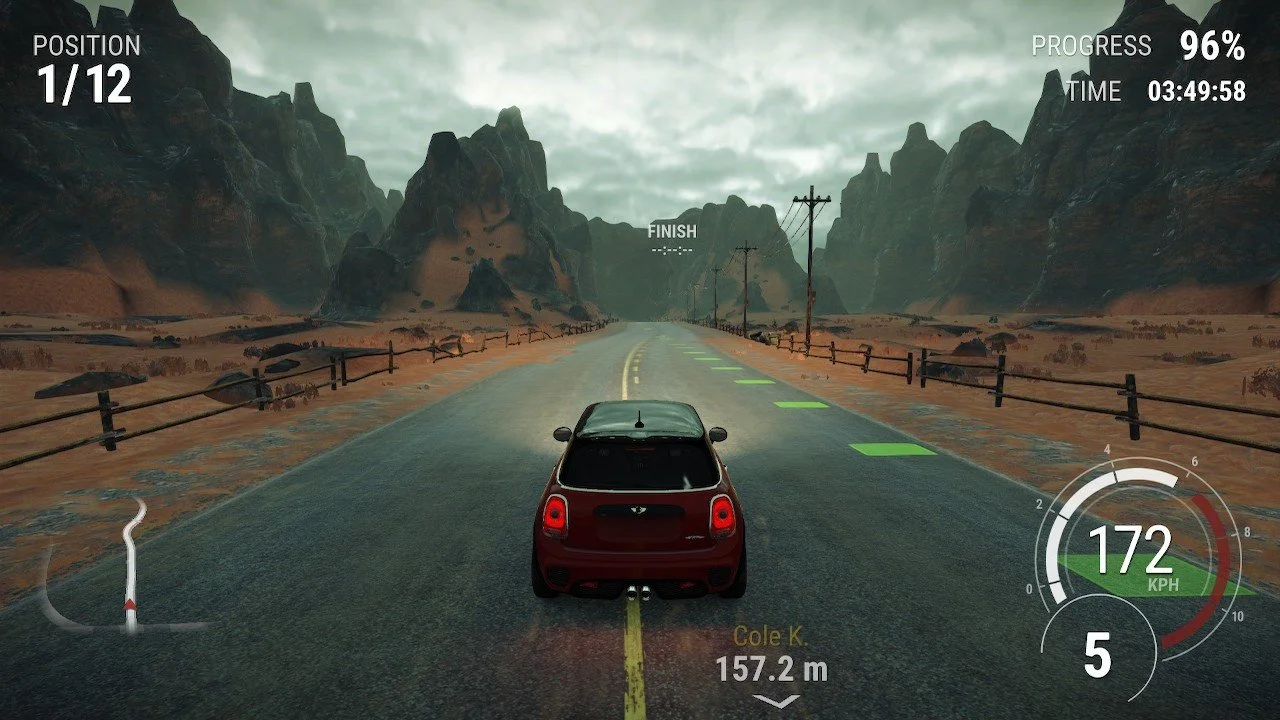 Car models and the overall presentation is solid, and while courses can feel a tad basic, the lighting and aesthetic is impressive, making a few tracks truly stand out. The highway battles do get a bit repetitive and their respective courses are fine, mostly since you are rarely checking out the course as you'll be more focused on being able to squeeze between cars at high speed as you battle for supremacy.