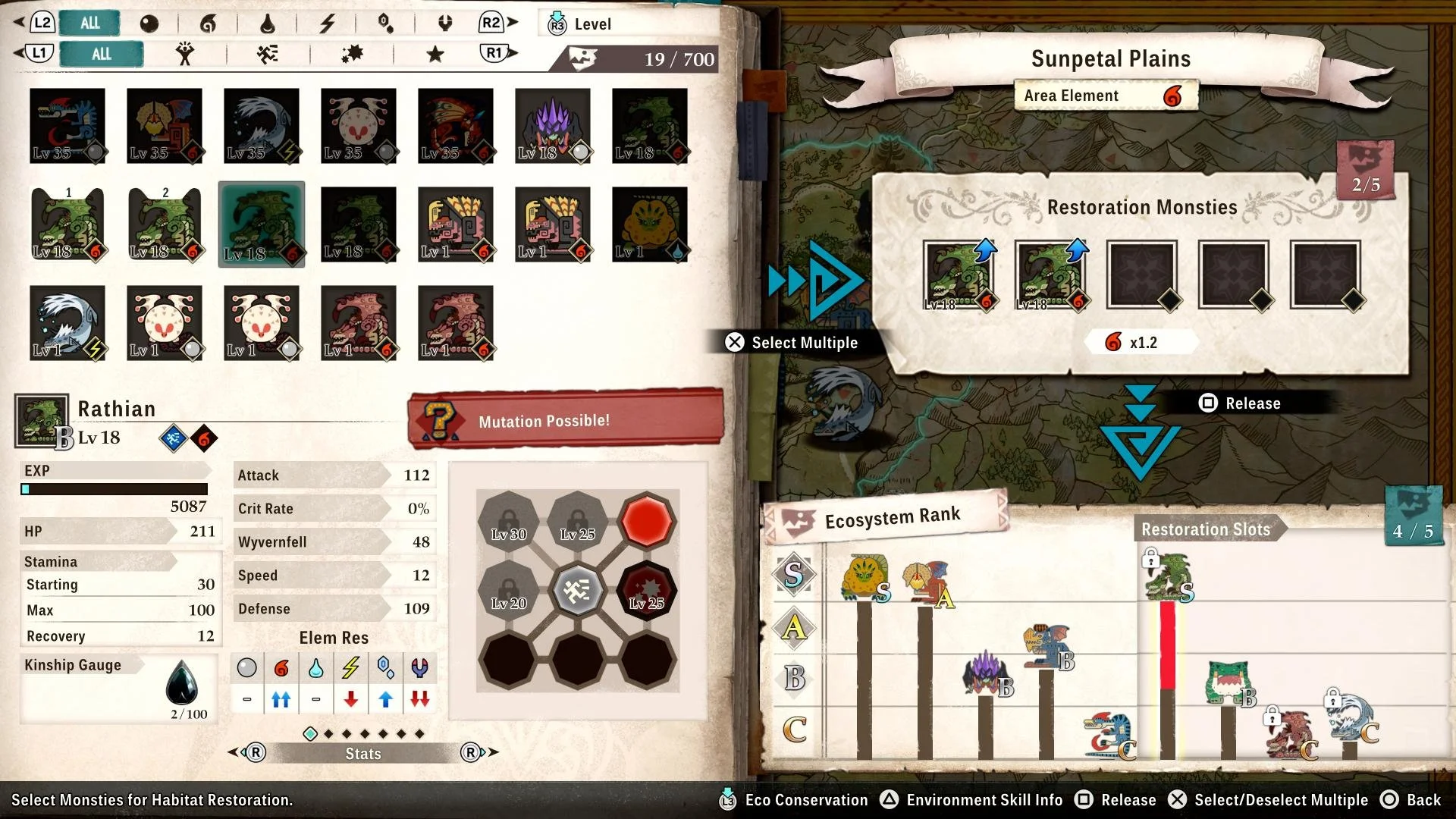 While Stories 3 does refine much of what has come before, there are some additions and omissions to certainly talk about. First, while mutations did exist in the second game, they are far more prominent here due to a new system called Habitat Restoration. As you collect more Monsties by finding dens and snatching eggs, you can release those monsters back into the wild. This allows mutations to then appear around the map as early as the game’s opening few hours. It also makes gathering eggs feel drastically more important than ever before.