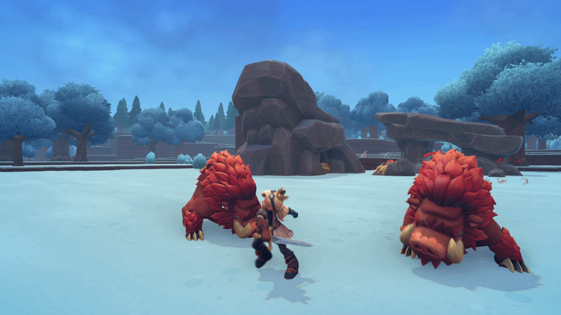 While simply running around is part and parcel for a third-person adventure game with deep city-building systems, traversal is really fun here with a boost of speed that even allows you to sprint across water or lead up to a wild strike to your foe. Movement is fast, snappy, and really is a system about keeping you moving. I mentioned before the similarities to the likes of Sonic and Zelda, and even Mario's jumping antics, and that is aptly put, feeling like a game built from its inspirations.