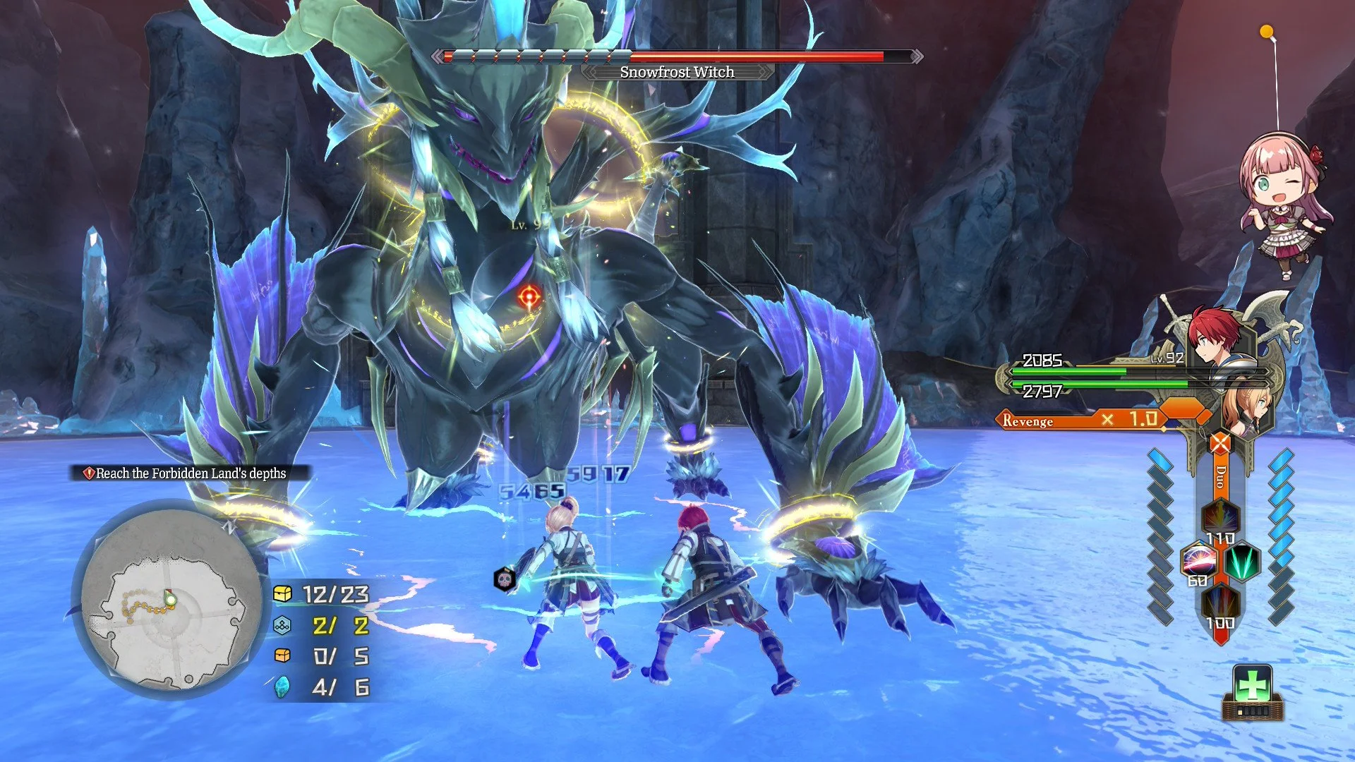 Combat generally works as you swap back and forth between the pair. While that is fine enough, Karja and Adol both shout “SWITCH!” at the top of their lungs every single time, with no setting to turn that off. The offhand character will gain some HP regeneration, but it’s rather slow to really be of much use. Still, being able to quickly swap back and forth is great, even if I feel it was better handled in Monstrum Nox due to the variety that switch entailed. Still, combat is as flashy and fun as it has been for years.