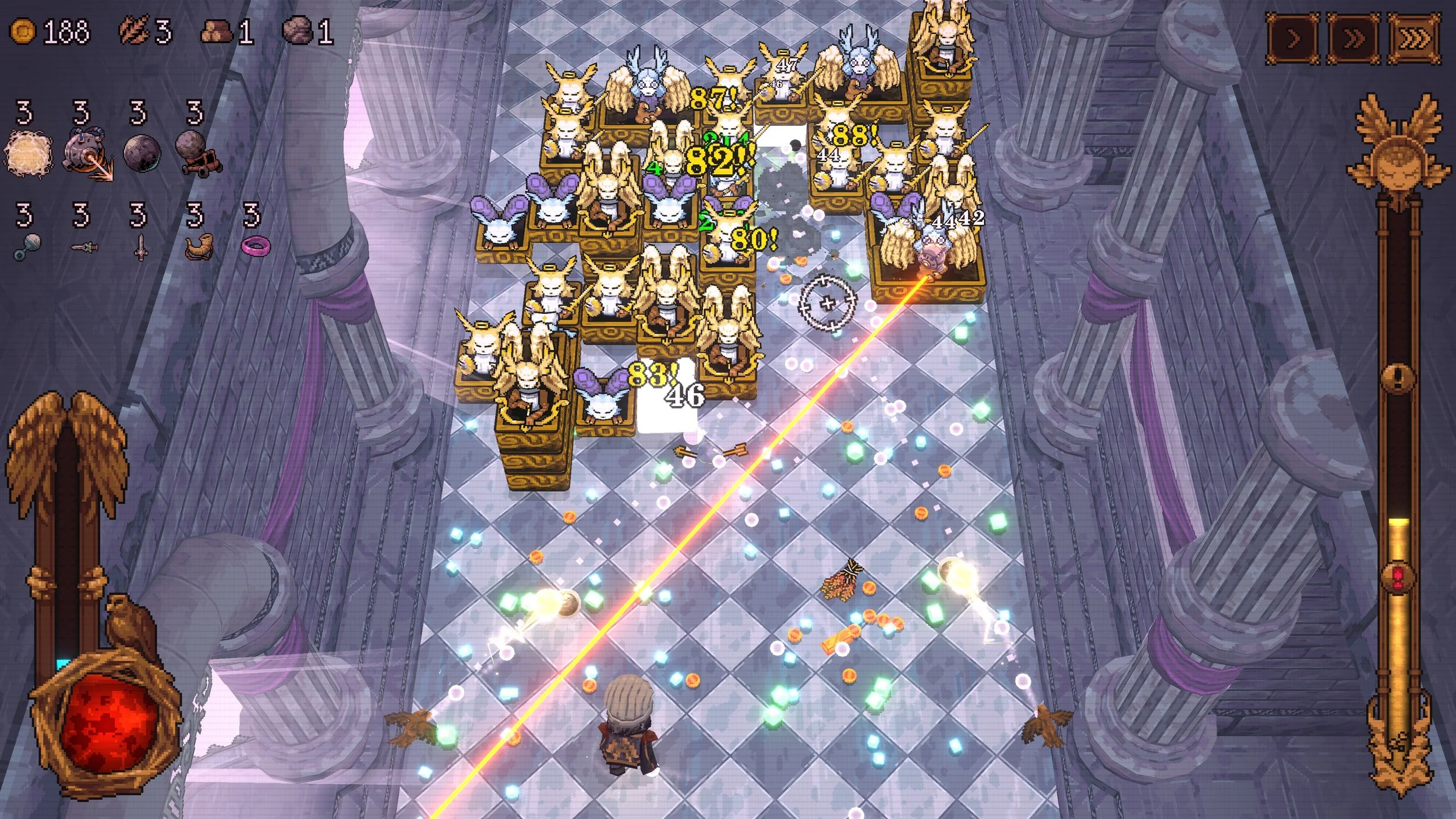 You can now play as the Falconer, a new character who fires off two balls launched by a pair of birds flanking the screen, giving their attacks a wide, swooping spread. Or take on the role of the Carouser, a medieval royal troublemaker who can twist ball trajectories with a personal gravity field, pulling shots off their usual paths.