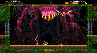 If I was to describe Wolfhound, as I allude to in the opening paragraph, its equal parts Metroid, Metal Gear, and Contra, all mixing quite well and offering a challenge to boot. It also provides other elements from a variety of classic games, such as zombies that rise from the ground, to spiders that attack out of nowhere. And speaking of Spiders, there is a rather large one that serves as a great boss fight, even despite lacking the proper arsenal to truly deal with it.